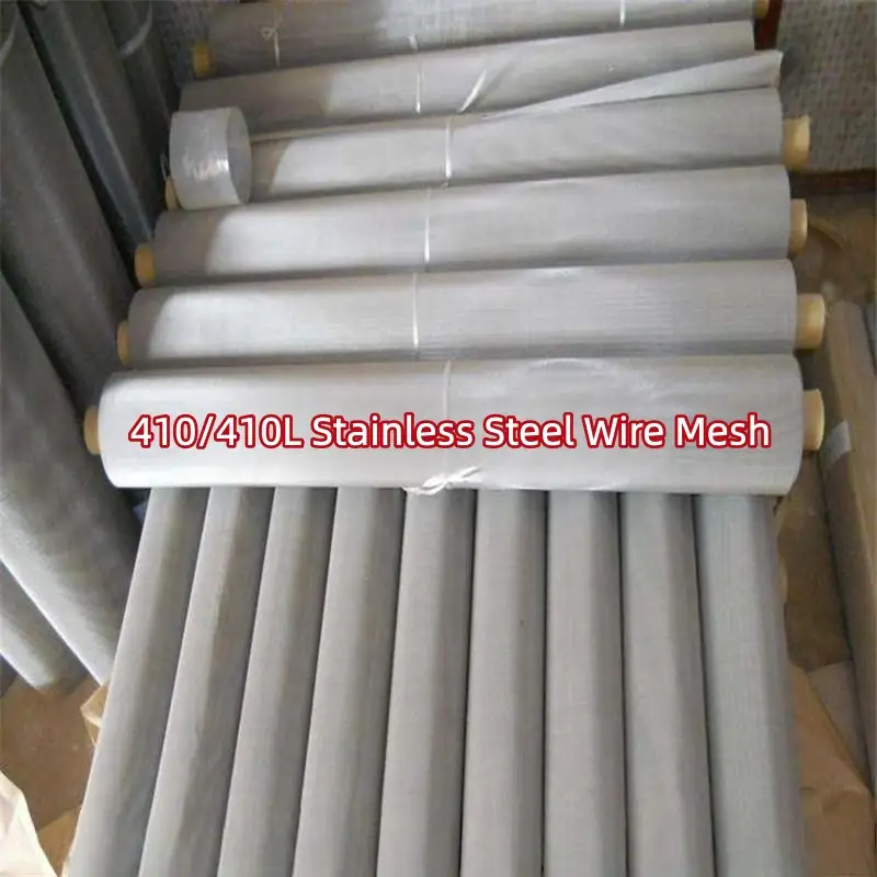 410 410L stainless steel wire mesh is an industrial wire mesh woven from martensitic stainless steel. Among them, 410L is an extra-low carbon grade, featuring good strength, hardness, wear resistance and processability. It is suitable for various working conditions requiring wear resistance, magnetism and general corrosion protection, making it a common product for industrial screening, protection and filtration. Standard mesh counts and wire diameters are in stock, and customization is available.