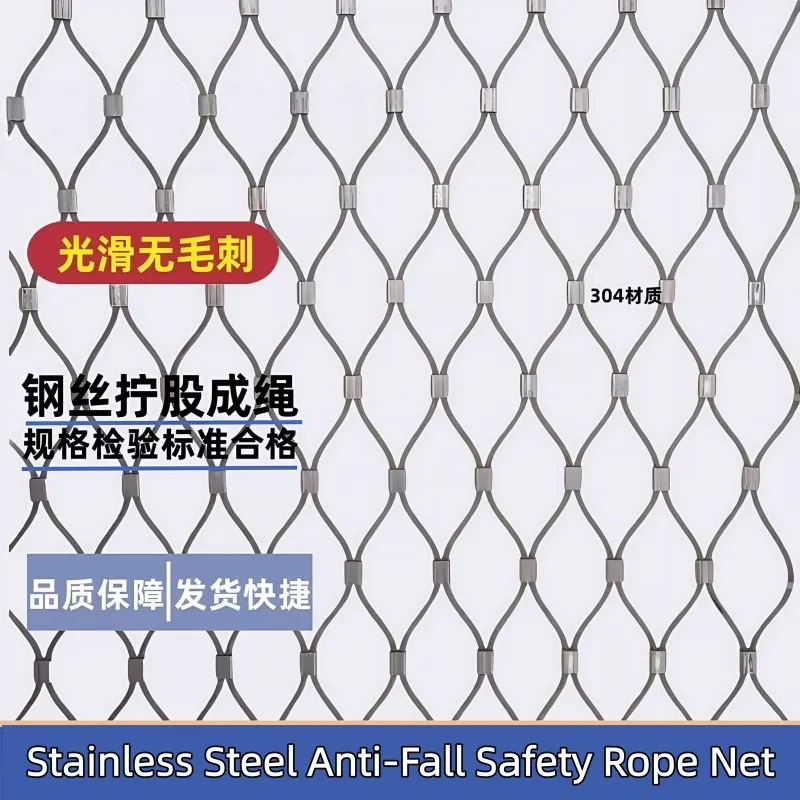 Stainless Steel Anti-Fall Safety Rope Net is made of 304/316 stainless steel wire rope through precision weaving and buckle pressing. It is a flexible safety protection net with corrosion resistance, high strength, anti-falling and aging resistance, serving as a professional safety product for high-altitude, foundation pit, equipment and other scenarios.